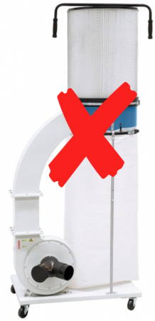 Ce type d’aspirateur à copeaux avec des sacs en tissu laisse passer TOUTES les fines poussières qui, avec la ventilation de l’aspirateur, se répandent partout dans l’atelier !